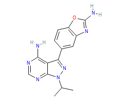 | PIK3CA (p110a) | PIK | Atypical | 6gvg | A | | 5-(6-azanyl-4-methyl-1-propan-2-yl-pyrazolo[3,4-d]pyrimidin-3-yl)-1,3-benzoxazol-2-amine | Human | 11655 | 0.75 | |